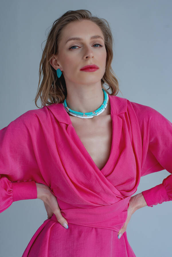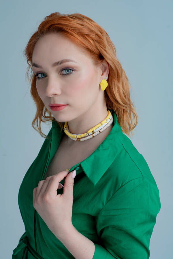 Heishi-chokerid on särav detail, mis teeb iga outfit’i terviklikuks ja elavaks. Minimalistlik vorm kohtub efektse meeleoluga — ehted on valmistatud Heishi-kummiketastest ning täiendatud hematiidist detailidega kuldses või hõbedases toonis, sõltuvalt valitud mudelist.