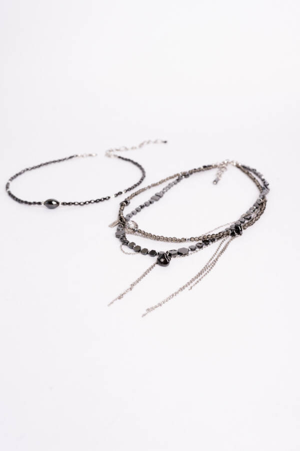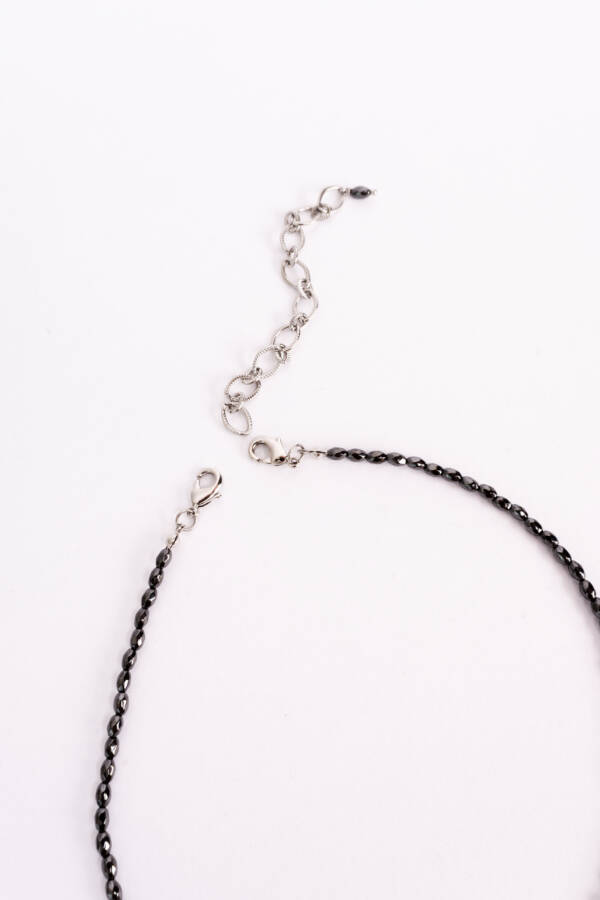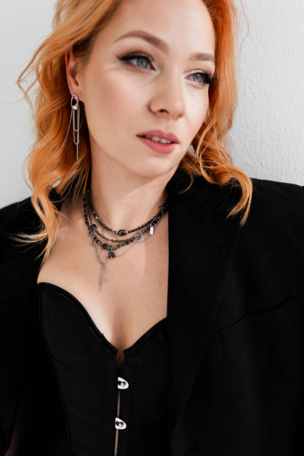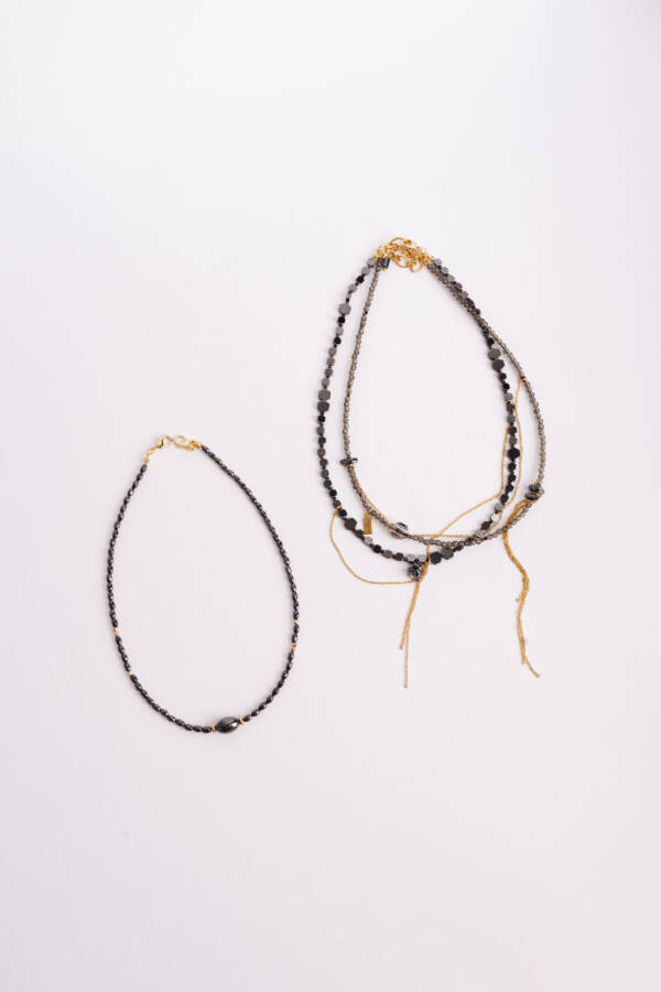 Многослойное гематитовое колье — украшение, которое играет сразу в нескольких ролях. Это и эффектный акцентный аксессуар для выхода, и лаконичный чокер для повседневных образов.