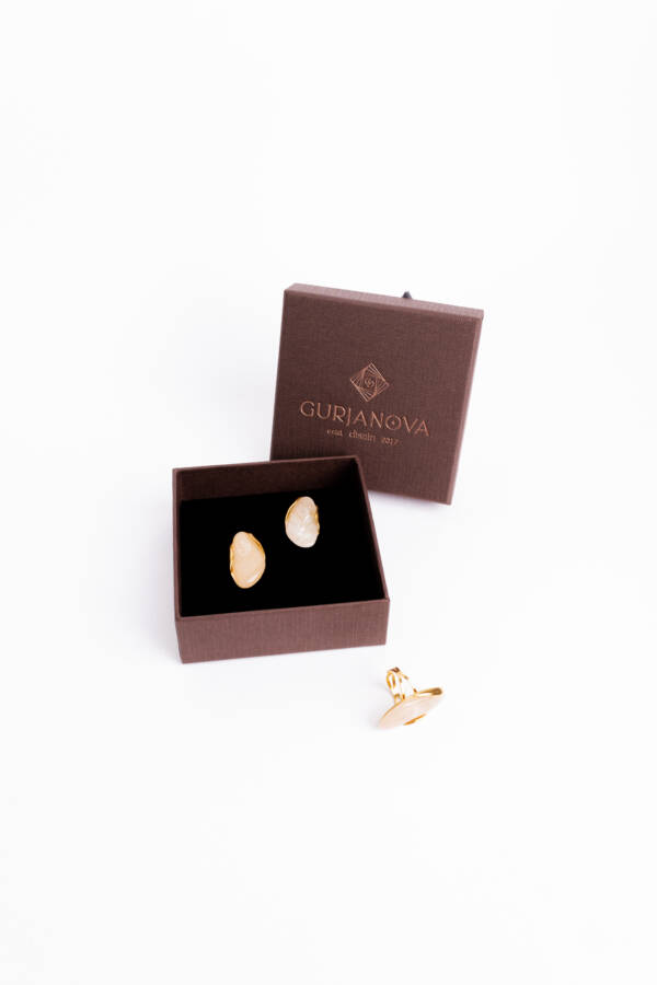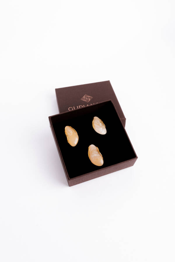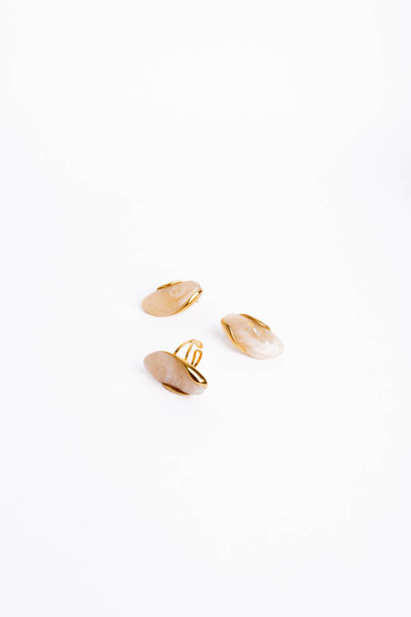 Серьги и кольцо из Statement Collection идеально дополняют друг друга, создавая цельный, стильный акцент. Уникальная текстура эпоксидной смолы делает каждое изделие неповторимым, а благородный металл с позолотой добавляет винтажного настроения.