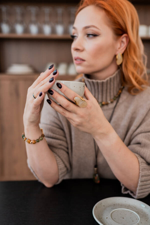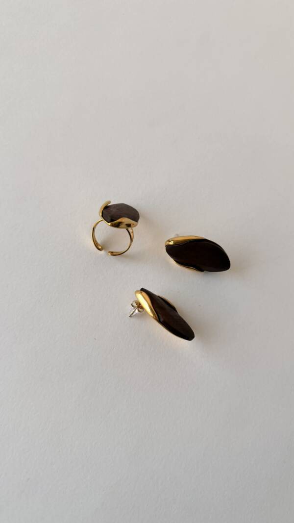 Основа выполнена из стали с покрытием позолоты. Кольцо регулируется, поэтому удобно садится на палец и не требует точного подбора размера — идеальный вариант для себя или в подарок.